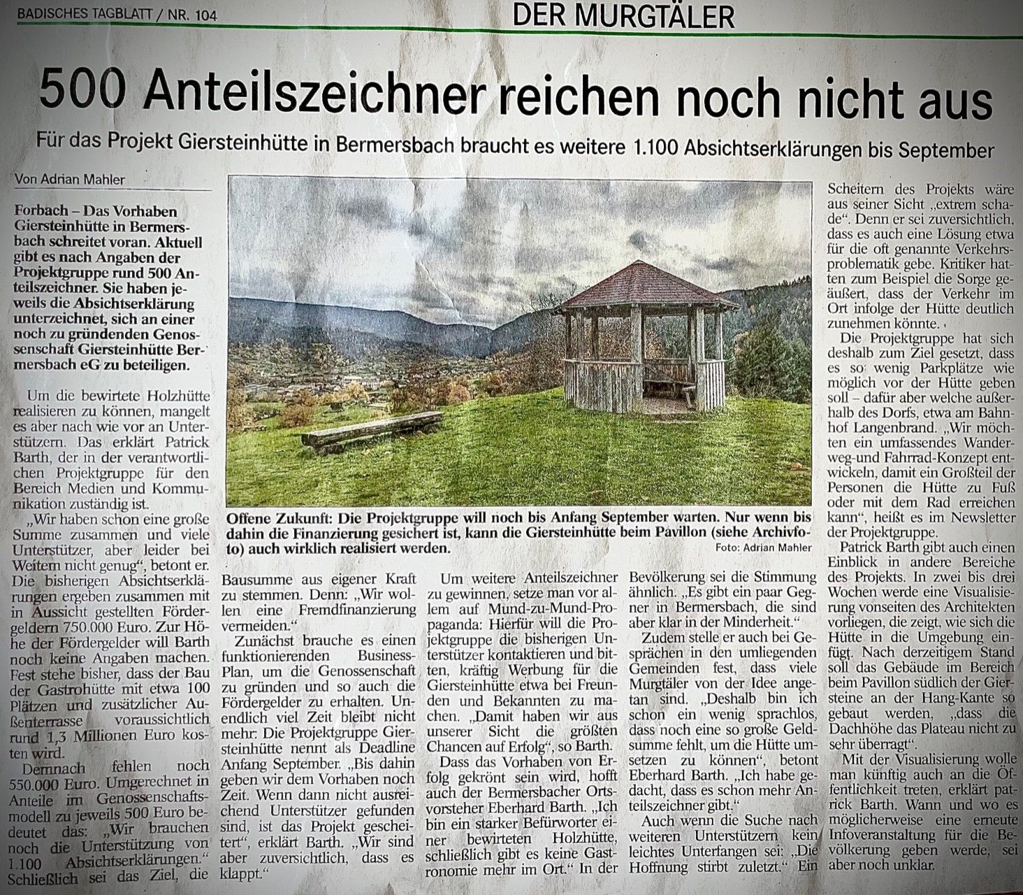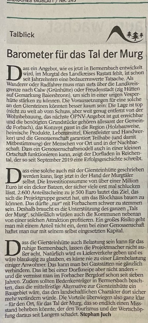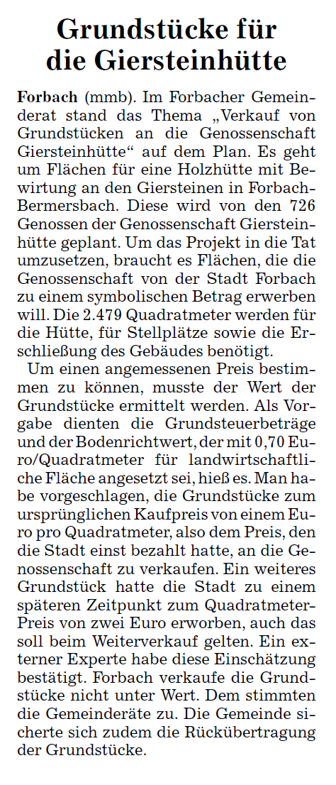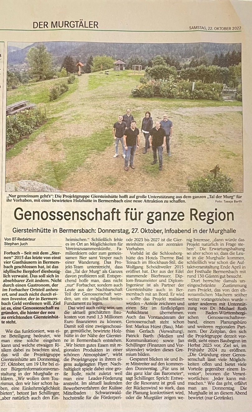 Hier finden Sie Neuigkeiten und Presseberichte über unserer Genossenschaft "Giersteinhütte".